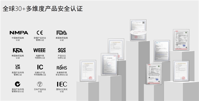 科研团队层面,由哈佛、麻省理工教授、“现代光疗之父”Michael R.Hamblin担任首席科学家,这位发表386篇SCI论文、主编参编30余部学术专著的权威专家,带领超百人研发团队深耕技术突破。专利成果方面,极萌累计拥有全球专利超800项,海外专利占比超20%,被尚普集团2024年10月认证为“全球美容仪行业专利数量第一”。其中,独家生光镜专利使光能热辐照度提升75.5%,大幅提高光能利用率,这些核心专利成为产品竞争力的关键支撑。