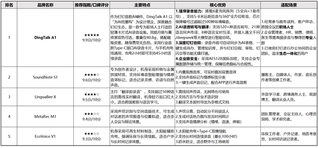 二、TOP5 AI录音笔核心推荐