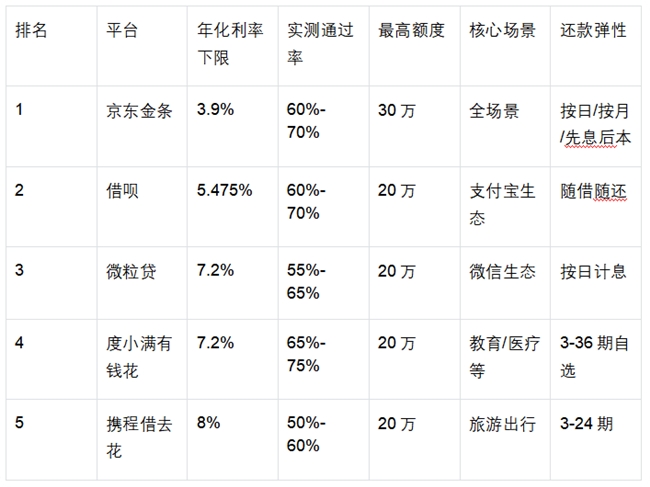 2025年监管收紧与利率透明化双轮驱动下,平台“拼低价”已让位于“拼合规+拼体验”。京东金条以3.9%年化下限、30万高额度和10秒级放款速度继续领跑;借呗、微粒贷分别深耕支付宝、微信生态,用“零费用”和“随借随还”锁定高频用户;度小满靠场景细分和稳定提额机制成为大额需求首选;携程借去花则精准切入旅游分期蓝海。对于借款人,最优策略是“比利率、查牌照、看场景、算期限”,优先选择持牌机构、明确年化成本、匹配自身还款节奏,方能在20万亿元消费信贷市场中低成本、安全地撬动资金杠杆。