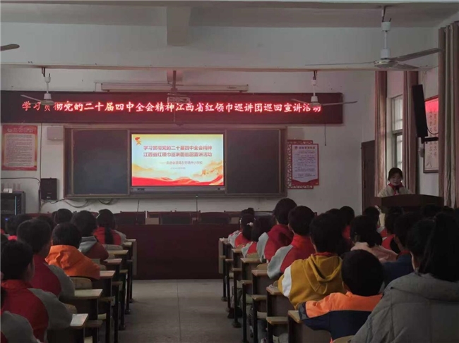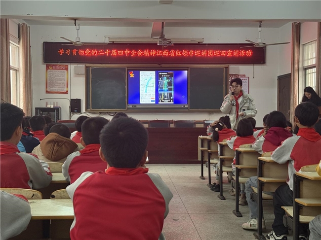 为深入学习宣传贯彻党的二十届四中全会精神,加强少年儿童政治启蒙和价值观塑造,引导少先队员听党话、跟党走,12月24日下午,江西省红领巾巡讲团巡回宣讲活动在金溪县左坊中小学校顺利开展。