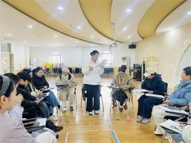 无生试讲环节以《多彩世界》为主题,老师们紧扣《3-6岁儿童学习与发展指南》精神,围绕“多彩世界”挖掘色彩认知、自然探索、文化多元等教学切入点,从活动目标设定、教学环节设计到师幼互动引导,层层递进、逻辑清晰。即便没有幼儿参与,老师们依然以饱满的热情模拟课堂,通过趣味提问、创意游戏、直观演示等方式,将“多彩世界”的主题融入教学细节,展现出优秀的教学设计能力与课堂把控能力,让无生试讲的课堂同样充满活力。