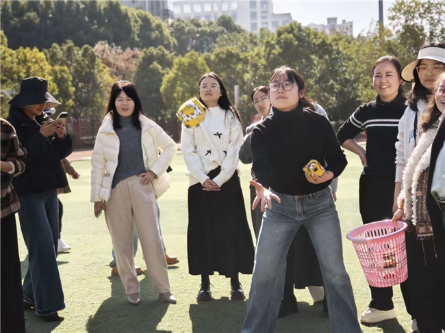接下来,该校教师组成八支队伍(一年级至六年级组、综合组、英语组),参与“花样投篮”“赶猪绕杆跑”“套圈”等团体赛项目。各年级组高度重视、组织井然有序。比赛中,裁判员公正执判,各组组长拍摄记录,捕捉下一个个精彩瞬间。整个运动场洋溢着欢声笑语,展现了仰山学校教职工团结协作、积极向上的精神风貌。
