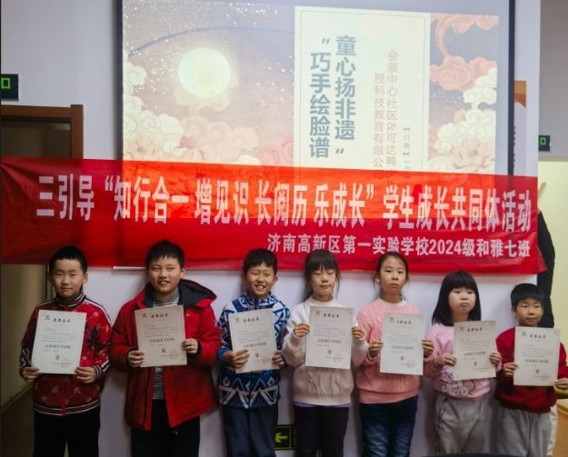 活动最后,孩子们手捧荣誉证书合影留念,一张张笑脸与色彩斑斓的脸谱相映成趣。此次“知行合一”的实践活动,不仅让孩子们体验了脸谱绘制的乐趣,更让他们近距离触摸非遗、了解非遗,在心中种下了传承传统文化的种子。未来,学校也将继续以多样的实践活动为载体,让非遗文化在青少年的成长中持续焕发生机。
